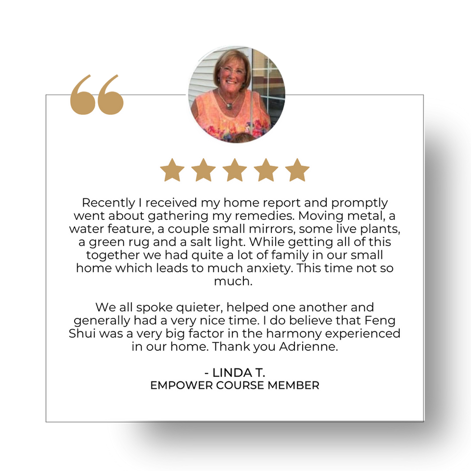 "Did you ever just know that something was off within your home? Even if you have never heard of Feng Shui, there is a little voice you keep going back to that says something is a little off within your home. After a little digging, I came across Adrienne. Adrienne's knowledge of all things Feng Shui is second to none. Initially, I was worried about working with someone virtually in a different country, but very quickly, Addie put my concerns to rest. I have had a number of consultations with Addie since I got my full report.